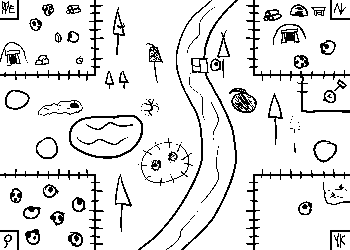 It was called the Civilization Project (sometimes stylized as "Civillization," because I didn't remember how many L's were in the word). The idea was that there were four territories in the corners of the paper (symbolizing the map), and thus had four "players" (which was just me playing with myself, so I played everyone). There wasn't really a goal to it; really, I meant it when I called it "more of a sandbox."